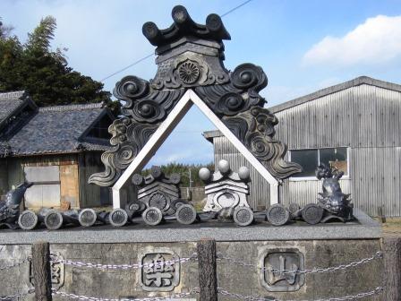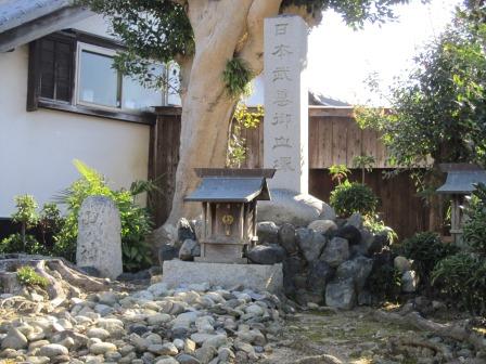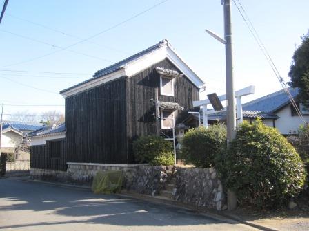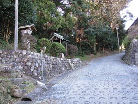 坂を上りきった先に、黒い板張りの蔵があり、その隣に「血塚社」の額のある鳥居が建つ。杖衝坂の説明板に記されているが、日本武尊の足の出血を封じたといういわれの血塚の祠がある。 |
