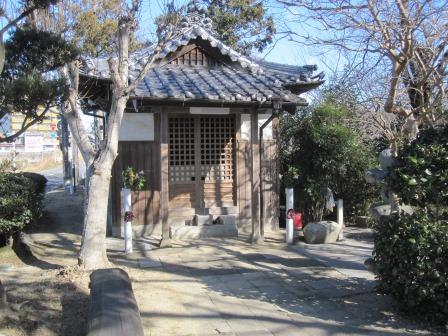 すぐ先の右に入る路地の角に地蔵の祠があるが、石があるのみで姿形はない。その奥には海善寺があるが、由緒不明。 |