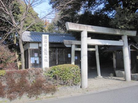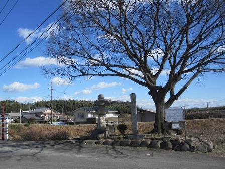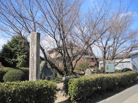 東海道からそれて、石薬師寺の山門の前の道を東に少し行ったところに、「蒲冠者範頼之社」と大きな石柱 のある神社がある。説明板には、御曹司社とかかれ、源範頼を祀った神社とある。その南には「石薬師の蒲ザクラ」がある。寿永3年(1184)平家追討のため西に向かう途中、石薬師寺に戦勝を祈り、鞭のしていた桜の枝を地面に逆さに挿したのが由来という。 |