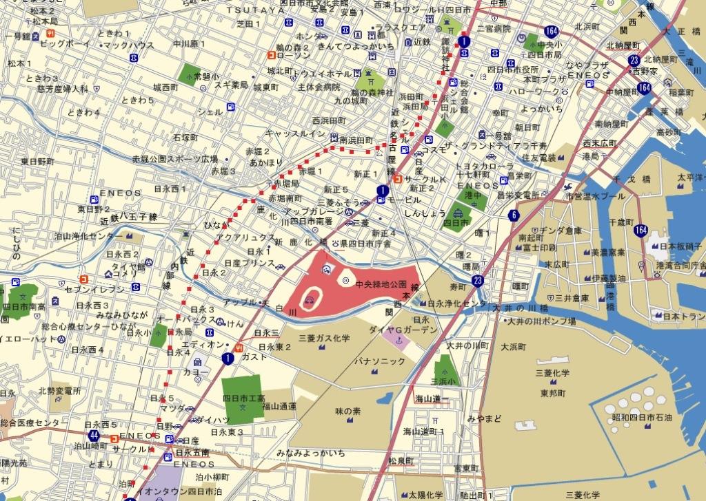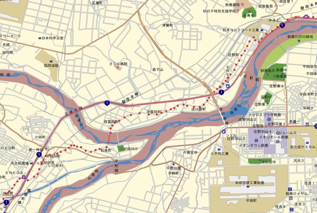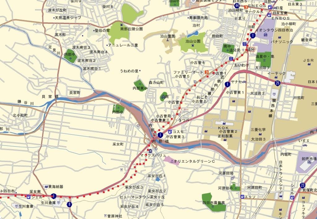 四日市-井田川 地図→①四日市-日永 ②日永-采女 ③采女-加佐登 ④加佐登-井田川 |