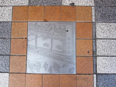 歩道上の脇本陣跡のプレート 高砂館跡−明治天皇御小休所 |