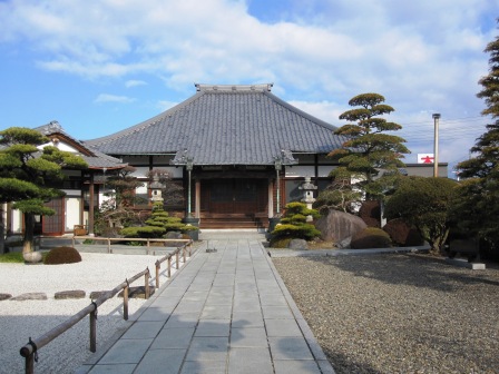 永徳元年(1381)に元吉原に了善寺として創建されたのが始まりで、その後移転した。 参道入り口に単体道祖神がある。 |